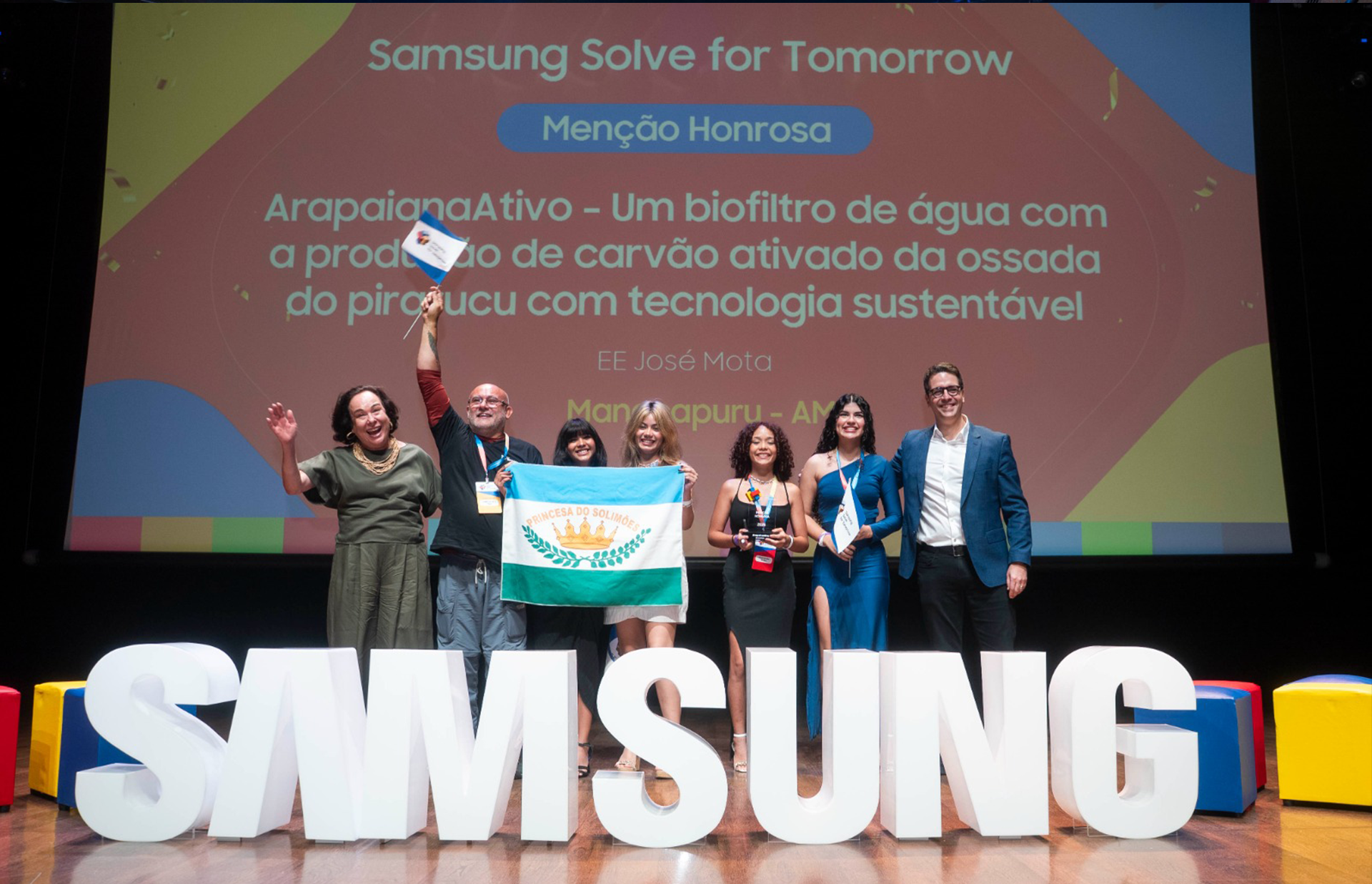 A Samsung anunciou na manhã desta terça-feira (2) os projetos de destaque do Solve for Tomorrow Brasil1. Na 12ª edição do programa no País, foram premiados estudantes dos estados do Amazonas, Goiás, Maranhão, Pará, Paraíba e Rio Grande do Norte. O programa global de cidadania corporativa da marca, que no Brasil tem coordenação geral pelo Cenpec, incentiva alunos e professores da rede pública de ensino a desenvolverem projetos com base na abordagem STEM (sigla em inglês para Ciências, Tecnologia, Engenharia e Matemática) para atender às demandas da sociedade. A cerimônia de premiação e encerramento da edição foi transmitida ao vivo pelo canal da Samsung Brasil no YouTube.