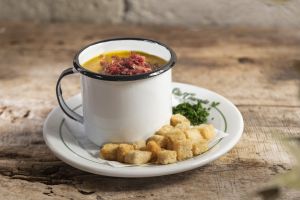 Neste ano, as casas oferecem dois sabores para provar durante toda a temporada, servidos em canecas de porções individuais pelo valor de R$ 25. As opções selecionadas são Abóbora com carne-seca e Caldo verde (foto), acompanhadas de cebolinha picada e croûtons para o cliente finalizar da maneira que preferir.
